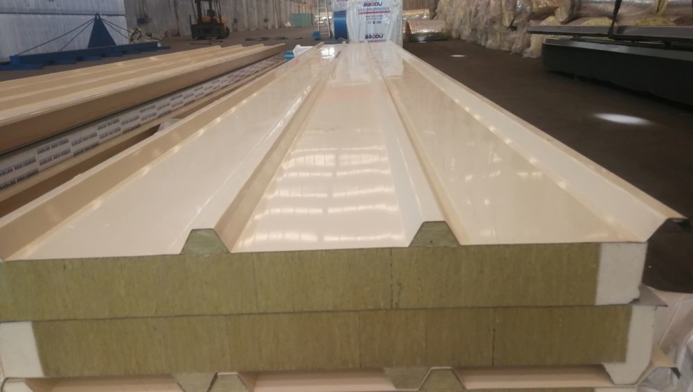 Painel sanduíche de lã de rocha à prova de fogo com poliuretano para telhado e parede de armazém